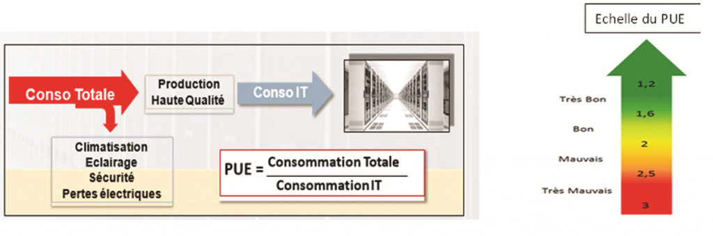 Le ratio le plus parlant dans cet axe est le PUE (Power Usage Effectiveness).