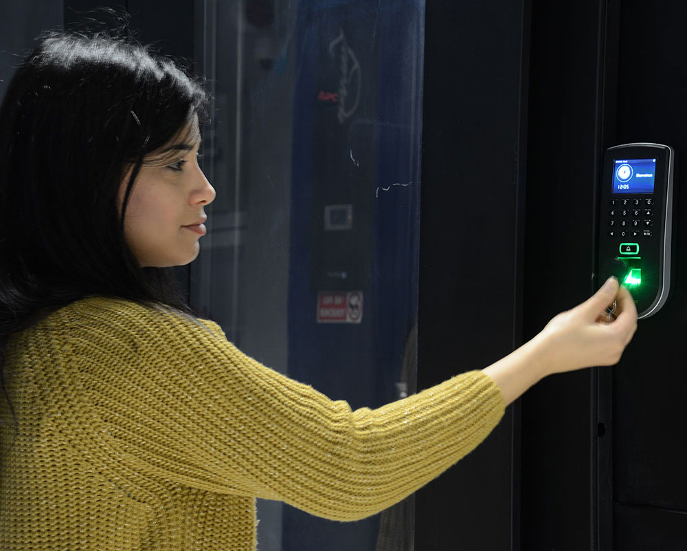- un système de contrôle d’accès personnalisable selon le besoin du client (lecteur de badge, biométrique …)